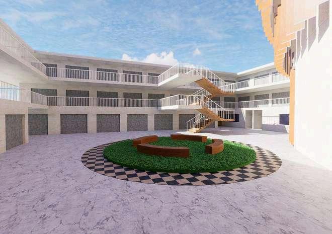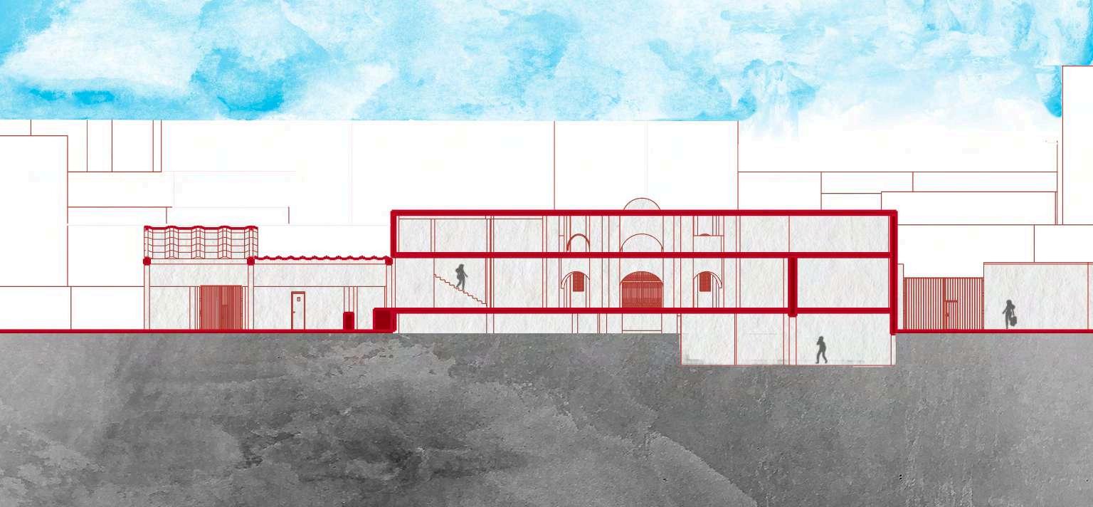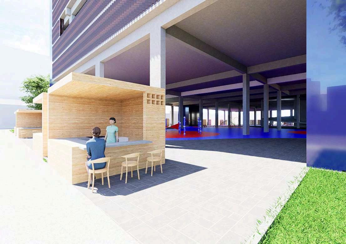 En el nivel inferior, los módulos comerciales se plantean como espacios abiertosysemiabiertos,loquefacilitala relación con el exterior. Esta condición prioriza iluminación y ventilación natural, disminuye la necesidad de climatización artificialypromueveunusomáseficiente delaenergía