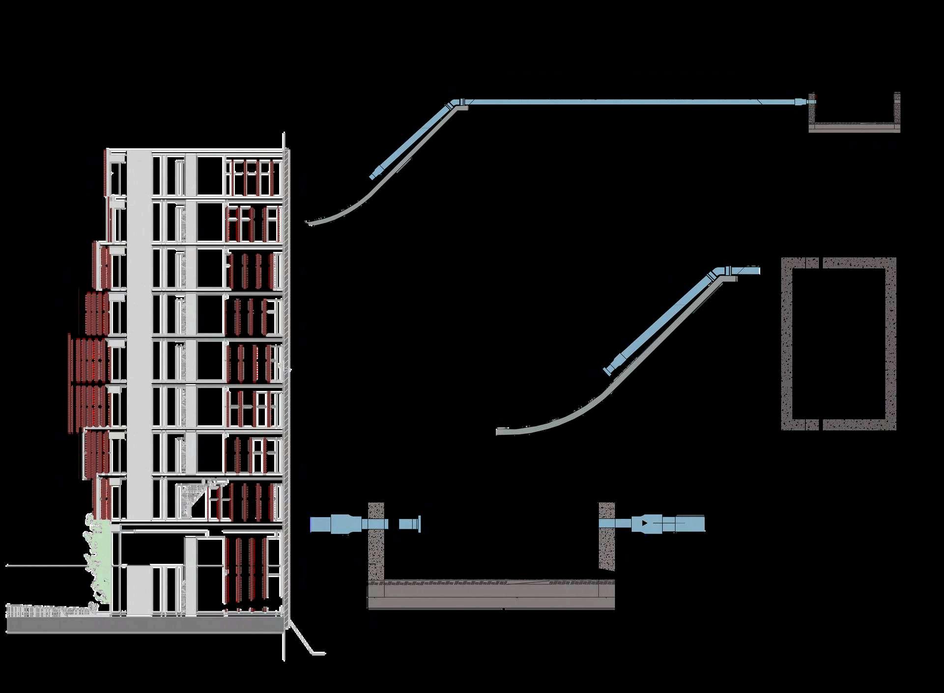 Conestaestrategia,elproyectoreduceel consumo de agua potable, optimiza el recurso hídrico y refuerza su carácter como modelo de eficiencia y sostenibilidad urbana, con soluciones legibles en el corte arquitectónico que evidencianelcompromisodeledificiocon lagestiónresponsabledelagua