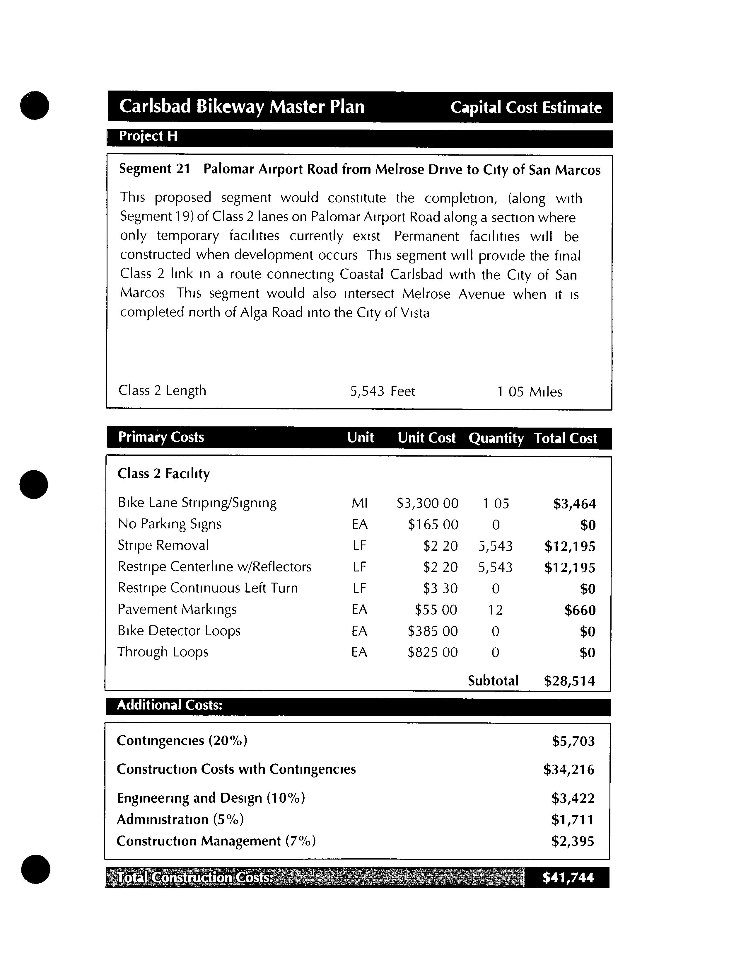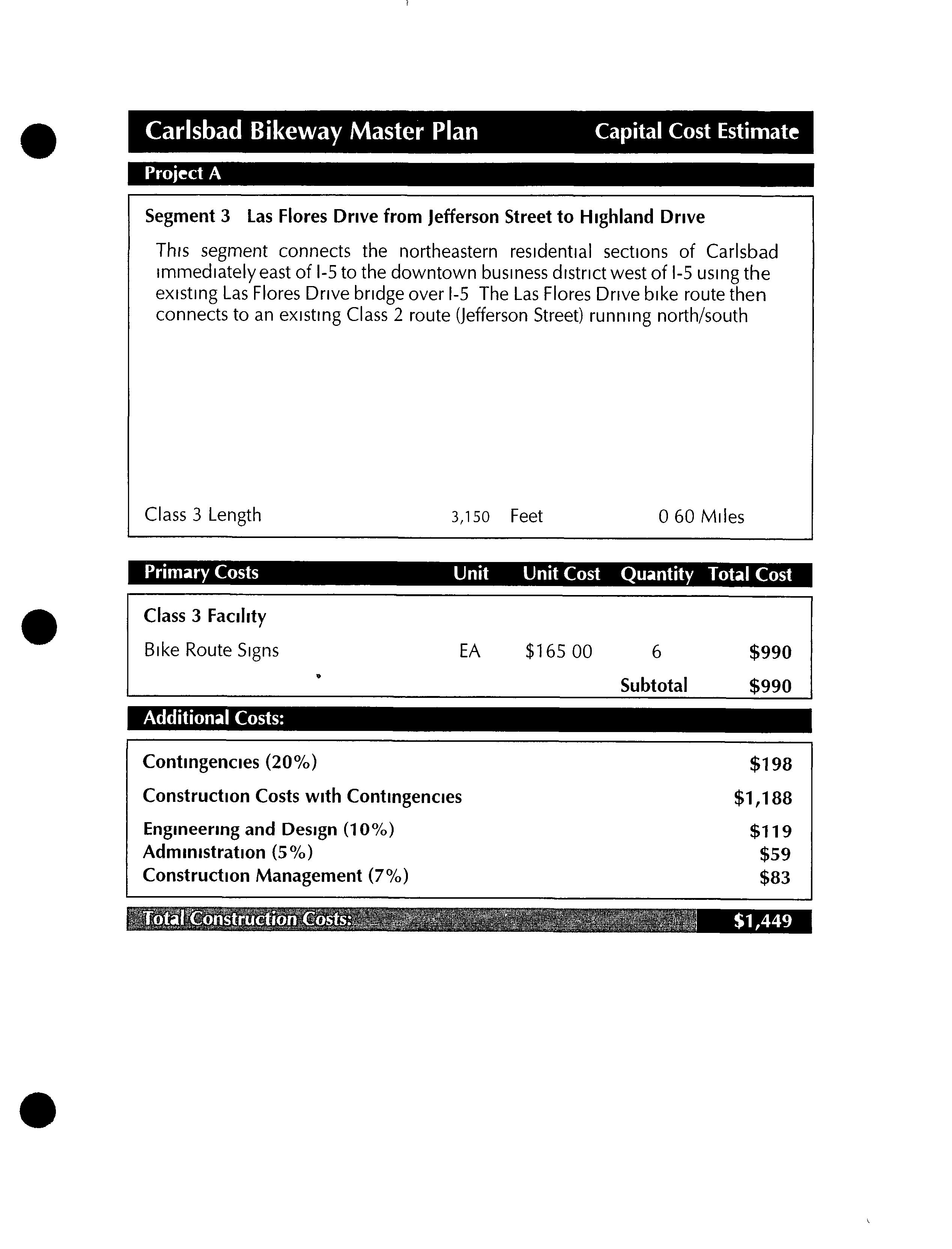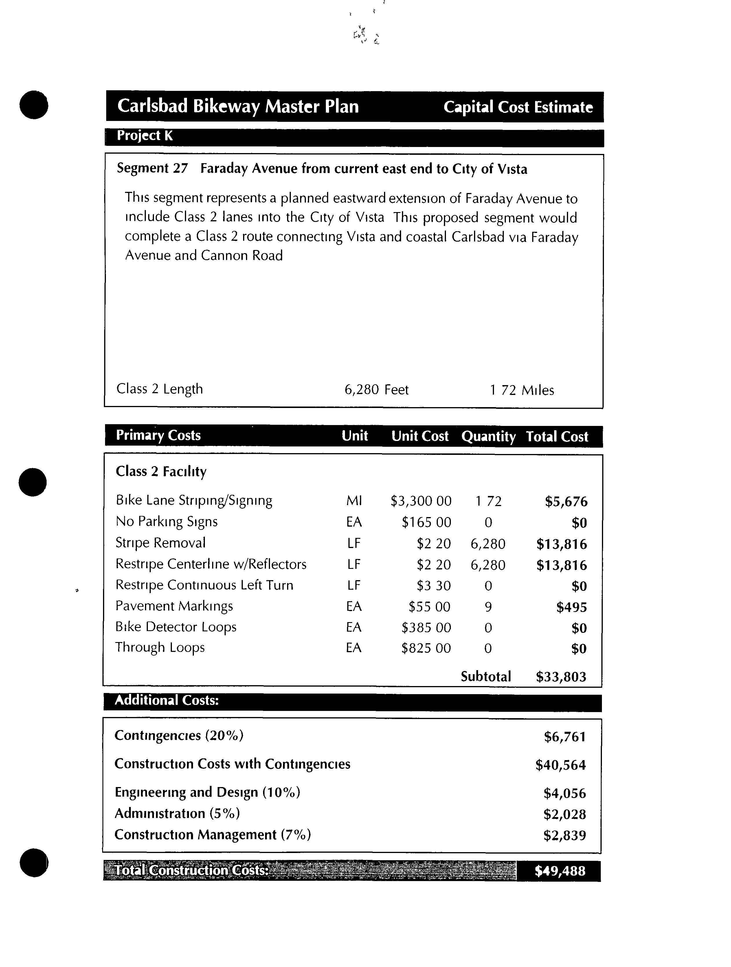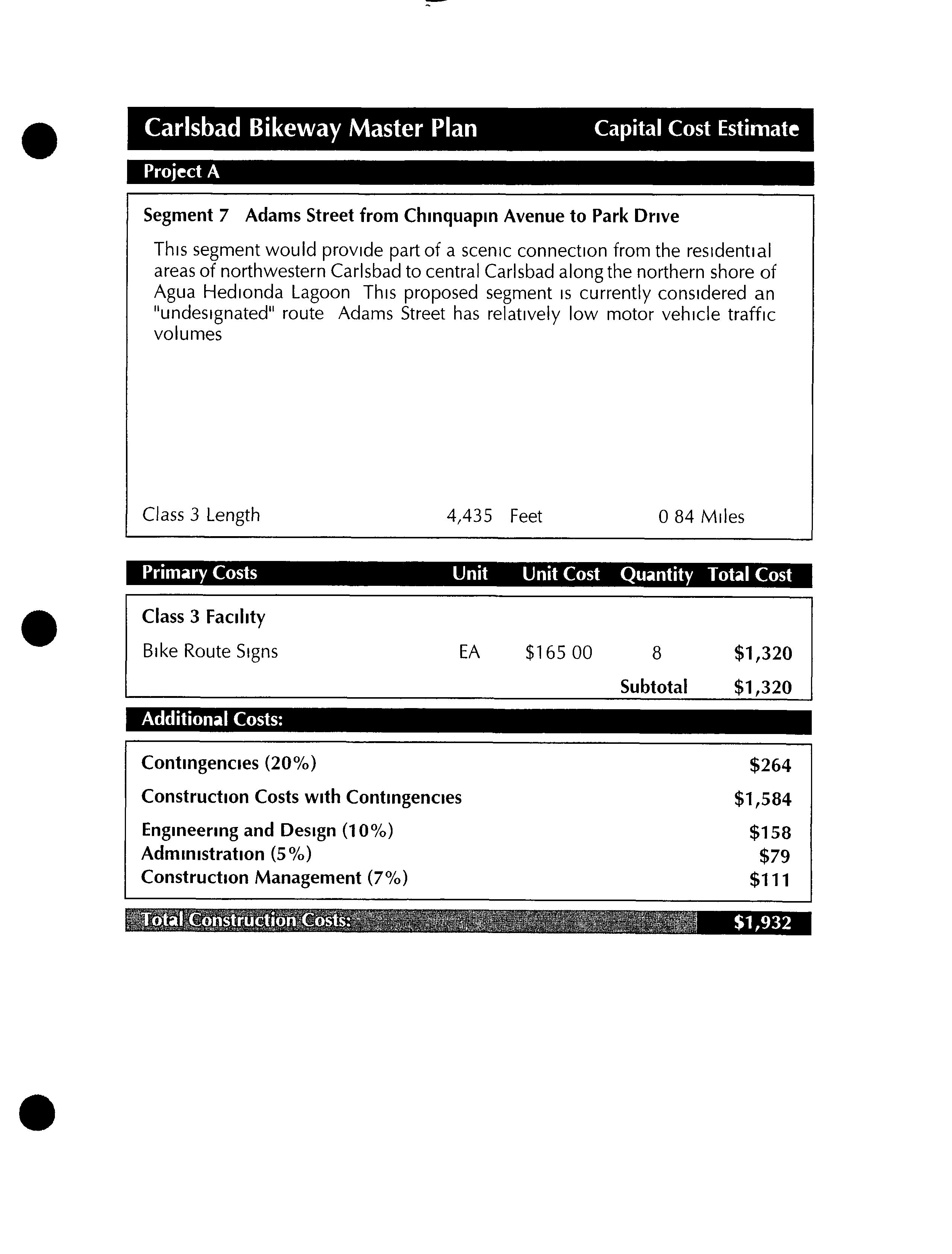 Much of this particular segment already exists as a well established dirt road To take advantage of this road andthe more natural experience it affords, these two segments would differ from all other proposed segments in this bikeway master plan by remaining unpaved Since this segment would be primarily for recreational use, commuting cyclists who preferred to ride on paved streets could use theclosely parallel Batiquitos Drive
