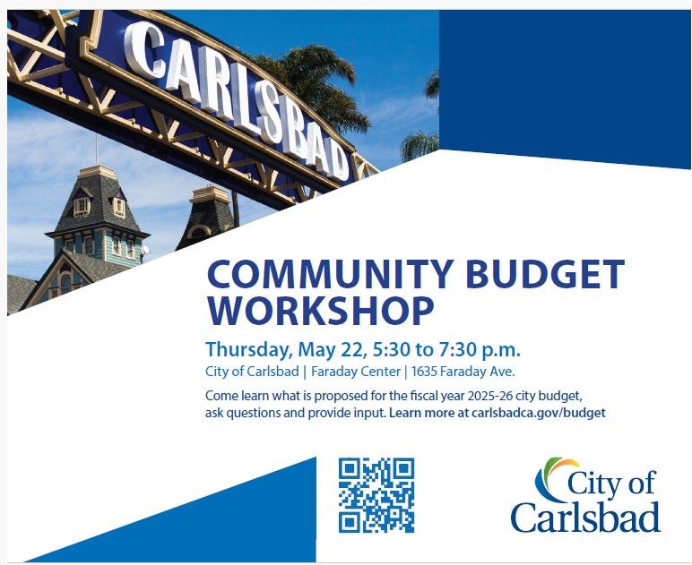This year’s budget reflects a long-standing commitment to fiscal responsibility and strategic planning. Despite economic uncertainty nationwide, Carlsbad remains in a strong financial position, with a AAA credit rating, strong reserves and among the lowest pension debts in the region.