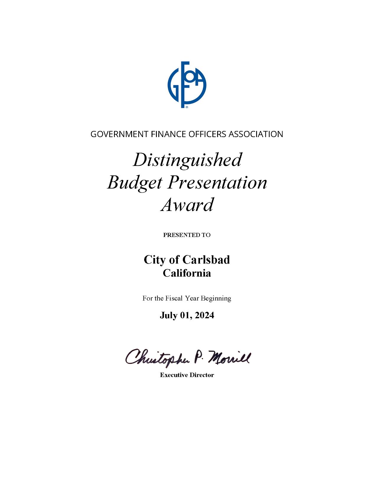 Thank you to the City Council for your continued leadership and commitment to responsible financial stewardship. With this budget, Carlsbad is taking another important step toward achieving the community’s long-term goals while continuing to deliver top quality day-today services that enhance the lives of all who live, work and play in our city.