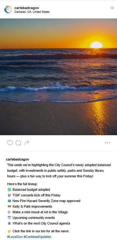 Carlsbad is starting the new fiscal year with a budget that invests in the community’s highest priorities, sets aside money for future infrastructure needs and grows the city’s cash reserves – all while supporting the continued delivery of top-quality day-to-day services our community expects.