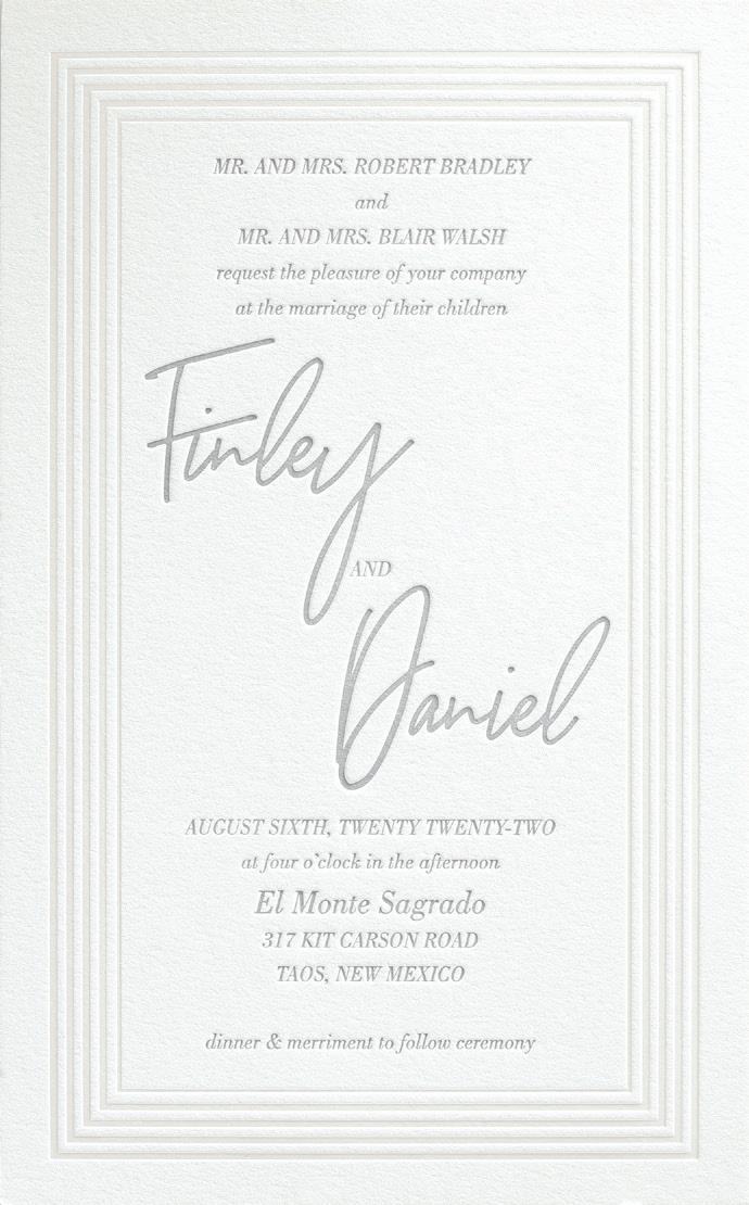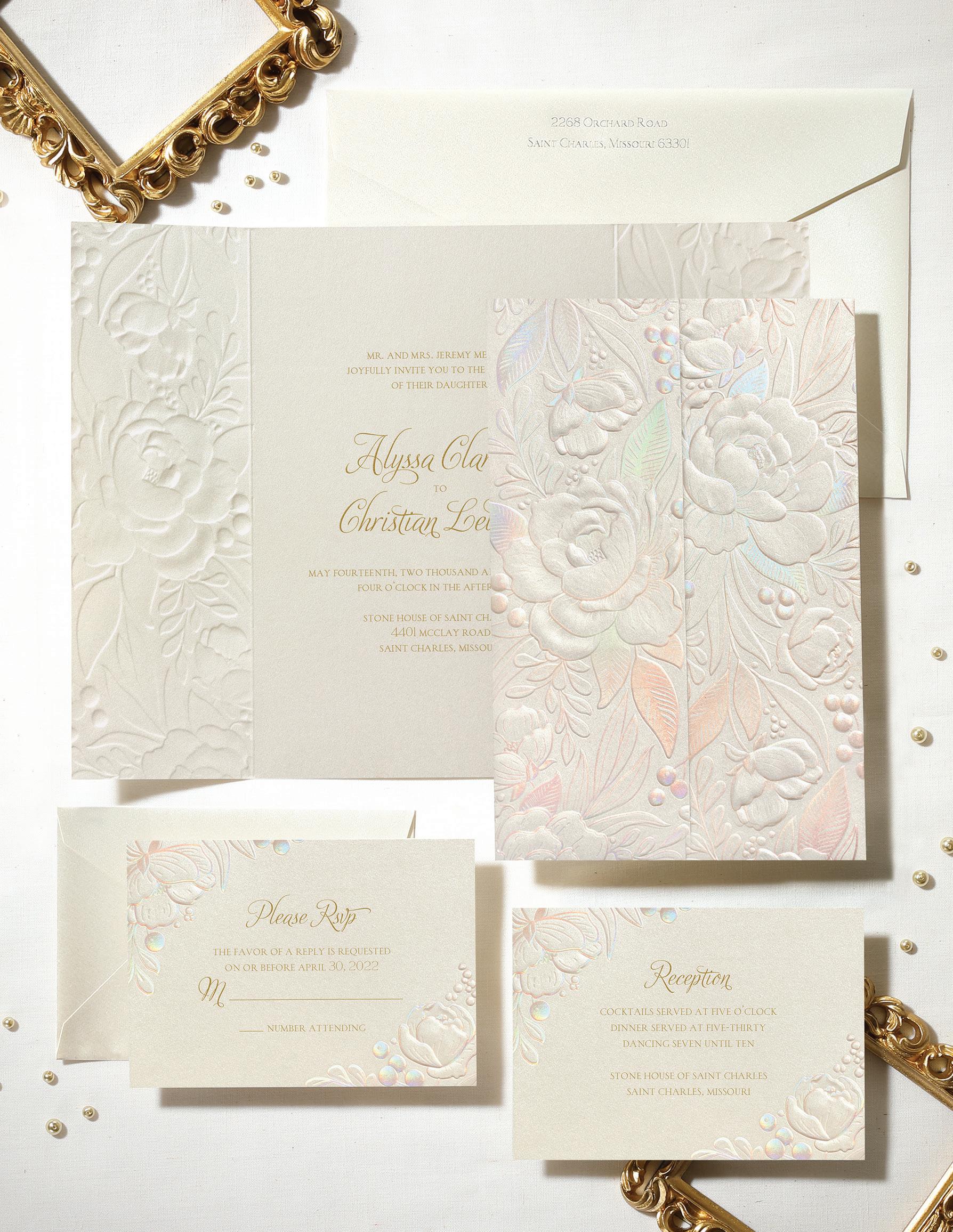 Fonts: Belluccia / Engravers Roman Paper: Shimmer 105 lb.