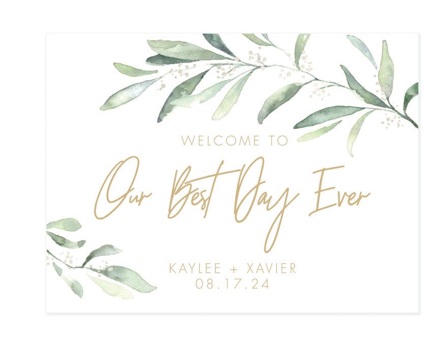 A. BOHO SOPHISTICATION WELCOME SIGN - BLANK 24" x 18". Platinum ink and Bombshell font shown.