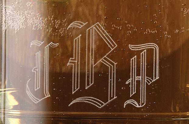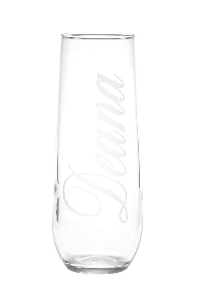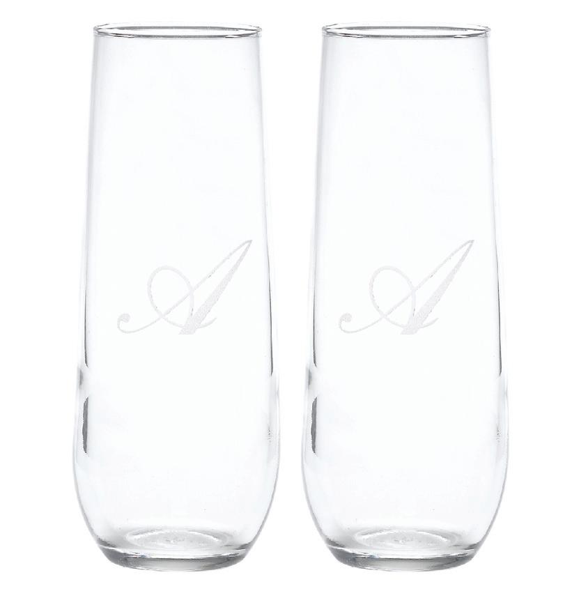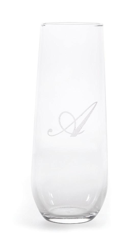 STEMLESS CHAMPAGNE FLUTE SET Set of two. 8.5 oz. S6L shown. Specify single initial.