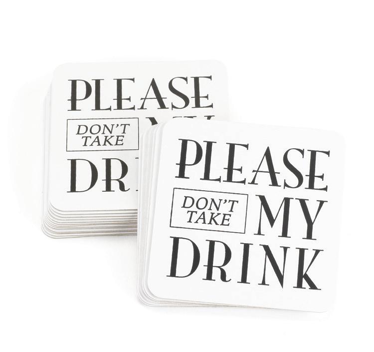 DON’T TAKE MY DRINK COASTERS Ink as shown. Package of 25. ZBK21572 $20.00