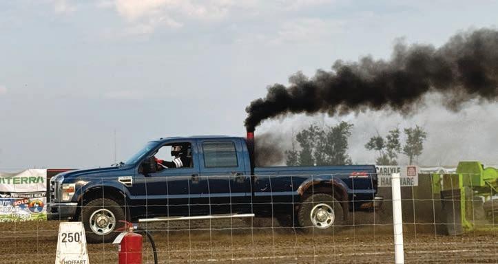 As black smoke filled the air and the engines were put to the test, one truck was able to break the weight sled. The chain that pulls the sled back into place had snapped. Luckily for the crew a local Cody Wasilinchuk, owner of Class Welding was on scene to repair the damage. The track continued to see action as the smaller vehicles and antique tractors kept the crowd entertained during this time.