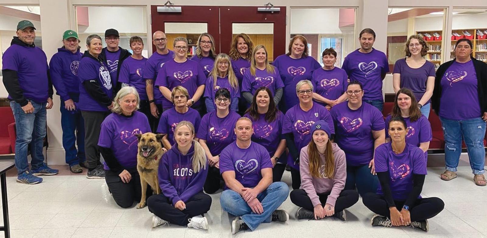 She left a lasting impression at the school with teachers and students. The sea of purple was beautiful and a day to remember. They brought in $1,990 from the Alida community. Thanks to all who donated to the cause. Diane and Ken Potapinski also attended and participated in the run with the Peet family.