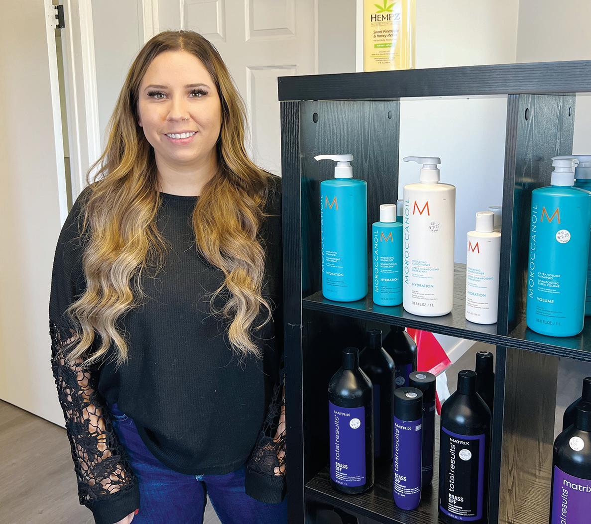 Taylor Osadchuk offers many hairstyling products at her new salon, Vibrance Beauty Lounge in Arcola. Photo by Stephanie Zoer