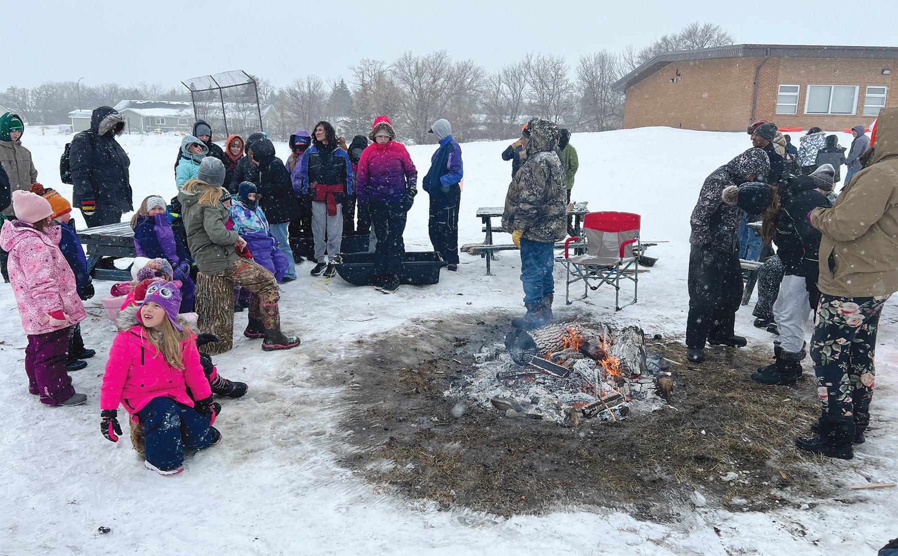A large firepit created warmth as the students sat around the fire to listen to stories from Ocean Man’s Elder Peter Bigstone. Bigstone is the language teacher for