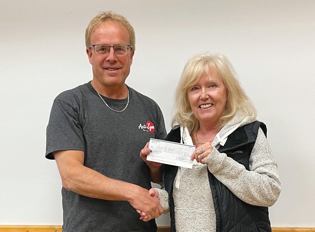 President of Act One Productions Tim Cowan presents their donation of $15,000 to the Alida Rec Board’s rep Shanna Carriere.