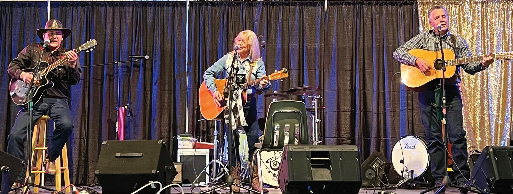 From left, Tim and Donna Shakotko and Dave Martel from the Caragana Ramblers were the first to perform at the Happy Nun Celebration.