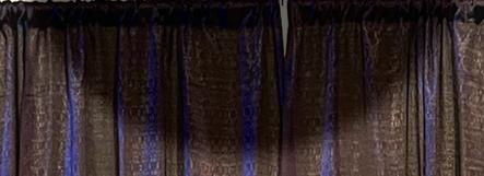 The stage housed a black and gold glitter backdrop, with stands holding several guitars and a set of drums that would be used by the bands that attended.