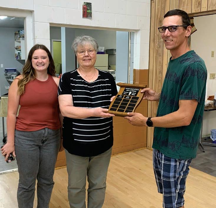 From left, Manor administrator Callista Lockerby and Mayor of Manor Lucille Dunn receive the SMAK attack award from the Mayor of Arcola Scott Tessier. Photo by Shirley Coderre