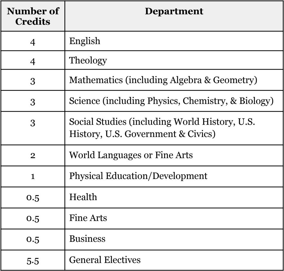 • Required courses: English, Theology, U.S. Government and Civics