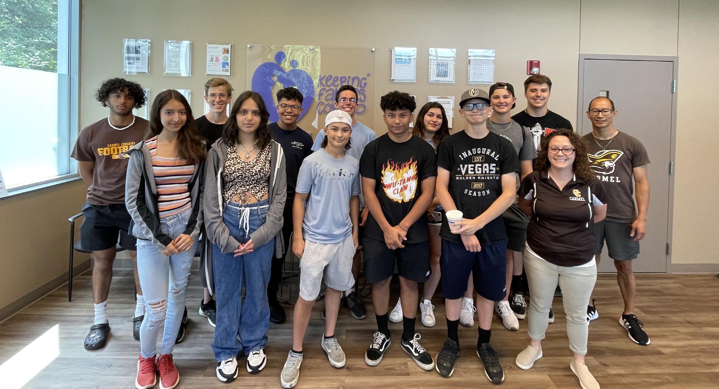 This past July, 12 Carmel students participated in a day-long service trip, volunteering at Keeping Families Covered, where they prepared a huge batch of diapers and other goods for local distribution. Chaperoned by Carmel’s Campus Minister Erin Kerger, the group sorted, labeled, and boxed up donations and learned about the organization’s mission and the large number of families in need in their community.