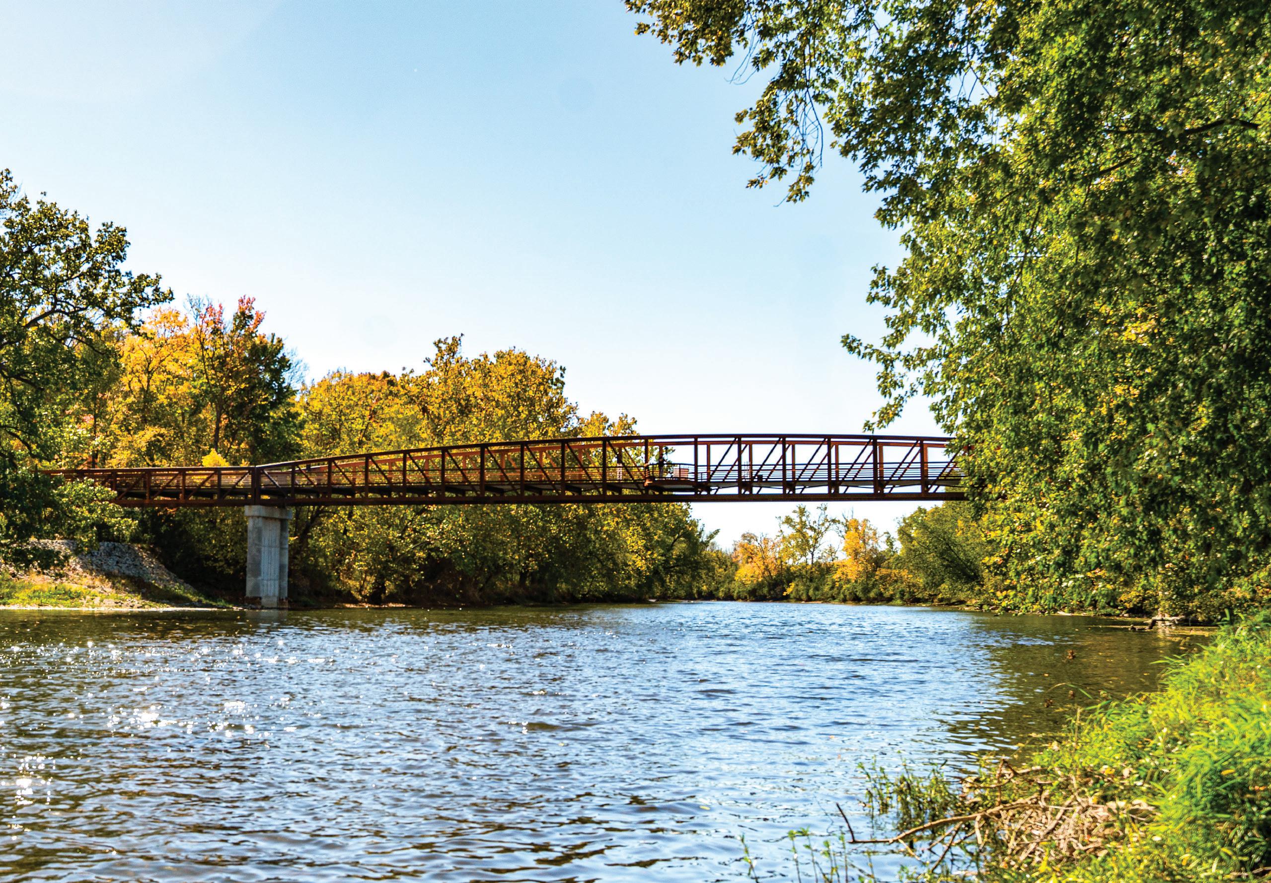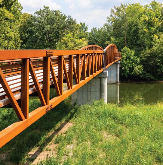 Bur Oak Bridge, opened October 20, 2025, connects Hazel Landing Park in Carmel to Heritage Park in Fishers via a 500-foot pedestrian and bicycle bridge spanning the White River. The project strengthens Central Indiana’s regional trail network by linking the Monon Greenway, Big-4 Rail Trail and Nickel Plate Trail, expanding opportunities for recreation and active transportation.