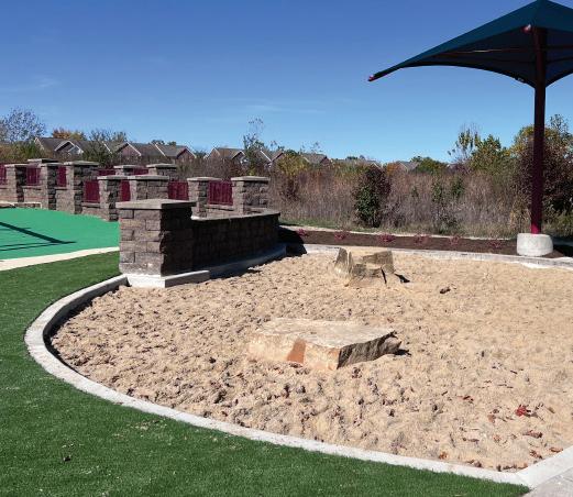 To protect the new safety surface and prevent future degradation, the sand feature was relocated to the northeast corner of the playground. Artificial turf was also installed in select locations to improve drainage, clearly define play zones and reduce ongoing maintenance demands.