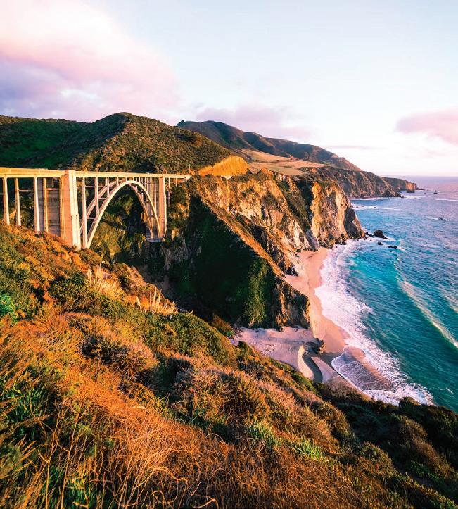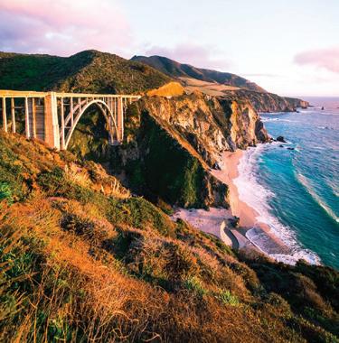 e Bixby Bridge in Big Sur was built by prisoners eager to earn “good time” o their prison sentences. It is one of the world’s highest single-span bridges at 714 feet long by 260 feet high.