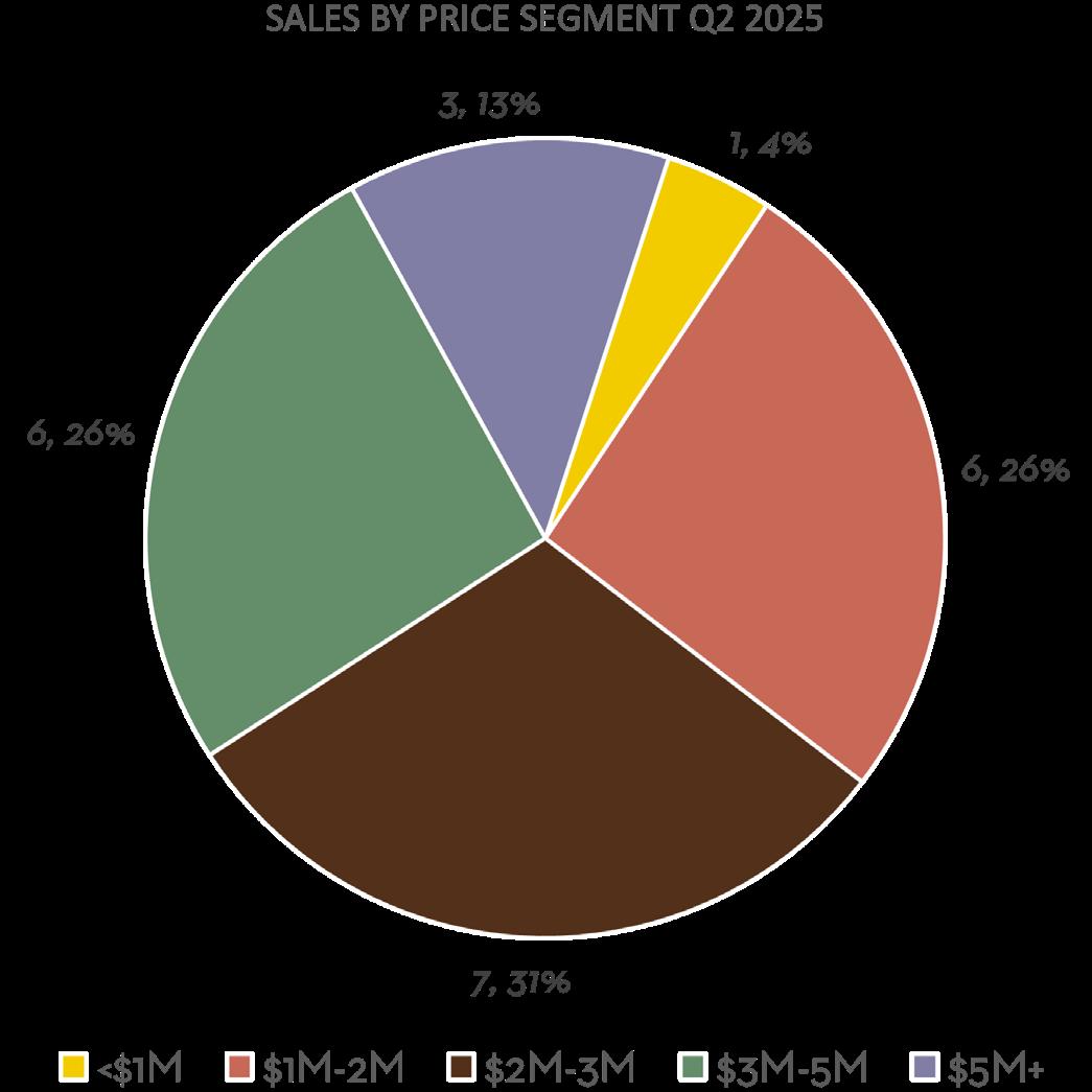 Entering Q3, Pebble Beach saw just one on-market and one off-market sale over $10M over the previous 12 months. The area saw three $10M+ on-market sales during Q3 of 2025. Carmel Realty Company doubleended one of these sales for $12.9M. There were three additional sales over $5M during the quarter, two of which had a client represented by Carmel Realty. With the elevated number of high-priced sales, the total sales volume topped $100M in the area for the first time since Q4 2024. Pebble Beach saw 23 sales during the quarter, the exact same number as the previous two quarters. While most areas have seen the average days to sell go up, Pebble Beach has seen homes sell quicker in 2025 versus last year. Homes sold in an average of just 38 days during Q3. Another $10M+ sale is pending closure in Pebble Beach to begin Q4, and when paired with several other contingent listings, Pebble Beach looks to be turning a corner in the high-priced market, after almost three years of slower activity.