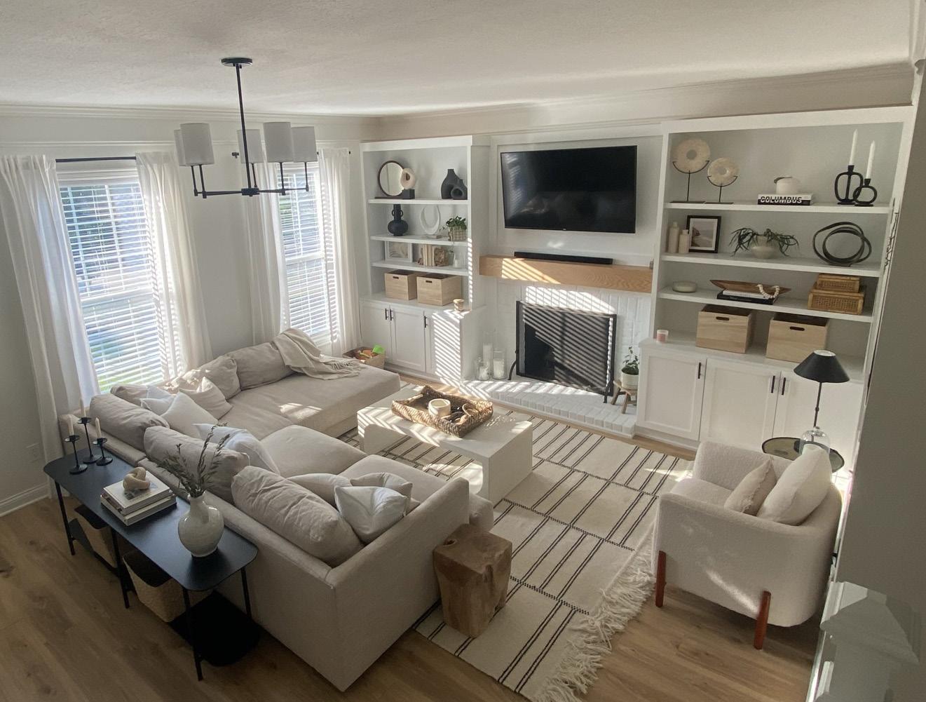 Callee did not know where to start when it came to furnishing & decorating her new condo. She wanted something casual and comfortable, while still looking put together effortlessly. I proposed fireplace refinishing options, window treatments, and a pendant along with the furniture & decor selections.