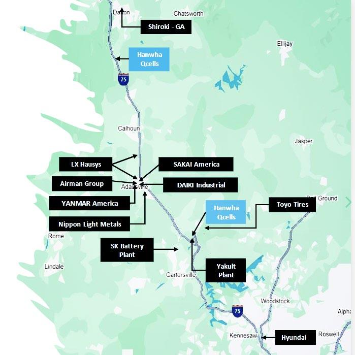 • Recent capital commitments from South Korean and Japanese firms reinforce long-term tenant demand and supply-chain clustering across Northwest Georgia.