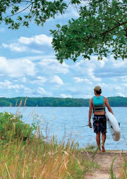 By Rail and Water Travel at a slower pace on U.S. rail lines and riverboats. 32 The First Ride Lake life reflections.