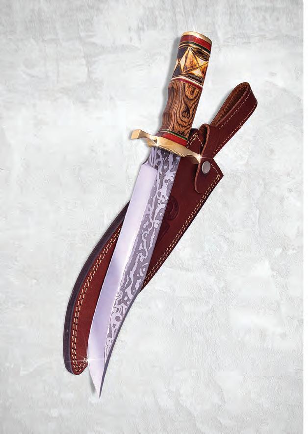 • Etched stainless steel full tang blade ; 16” overall • Painted natural bone and wood handle • Brass hand guards, spacers & end cap • Includes genuine tooled leather sheath 14101 Southcross Drive W., Ste 155, Dept. DUK402-01 Burnsville, Minnesota 55337 www.stauer.com