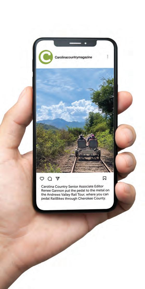 Periodicals postage paid at Raleigh, NC, and additional mailing offices. Editorial offices: 3400 Sumner Blvd., Raleigh, NC 27616-2950. Carolina Country® is a registered trademark of the North Carolina Association of Electric Cooperatives, Inc.
