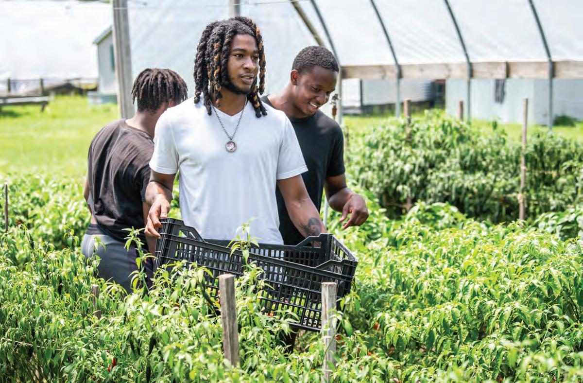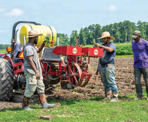 Rev. Richard Joyner holds collards ready for planting at the Conetoe Family Life Center in Edgecombe County. Learn more about the work the center is doing for surrounding communities on page 10. Photo by Randy Berger Photography.