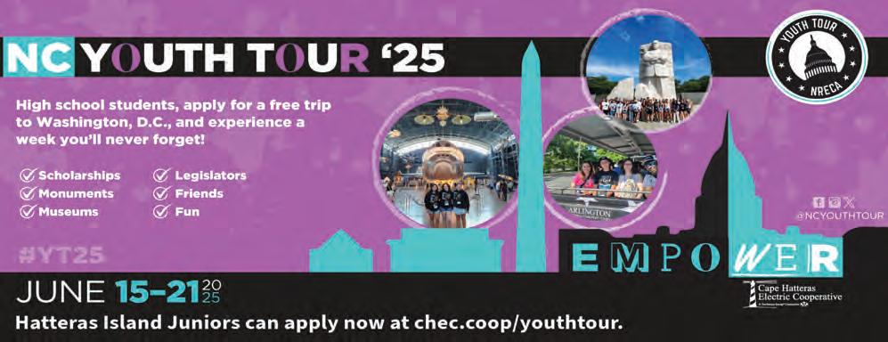 The September “Where Is This” photo by Cape Hatteras Electric member Harold Blakney features a rather jumbo-sized metal shrimp that once was a part of the former Native Seafood store’s sign on NC Highway 12 in Ocracoke on Ocracoke Island. The shrimp was recently removed but will soon be relocated to Ocracoke Seafood on the Ocracoke Harbor. The store now serves as the Beach Outfitters bike rental shop. Readers noted that island resident Russell Williams created the shrimp artwork. Robin Reams commented that “Mr. Shrimp has withstood many hurricanes as it proudly reminds us of one of North Carolina’s most beloved seafoods and an important part of our state’s industries.” The winning entry chosen at random from all correct submissions came from Anita McCants of Oak Island, a Brunswick Electric member.