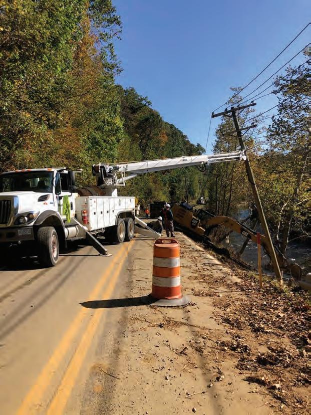 We also continue rebuilding the electric system after Helene left behind hundreds of broken poles, miles of mangled power lines, a substation underwater, and, in many cases, washed poles and wire down the river or buried in mudslides.