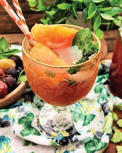 Bubbly Minted Muscadine & Peach Sangria Mocktail