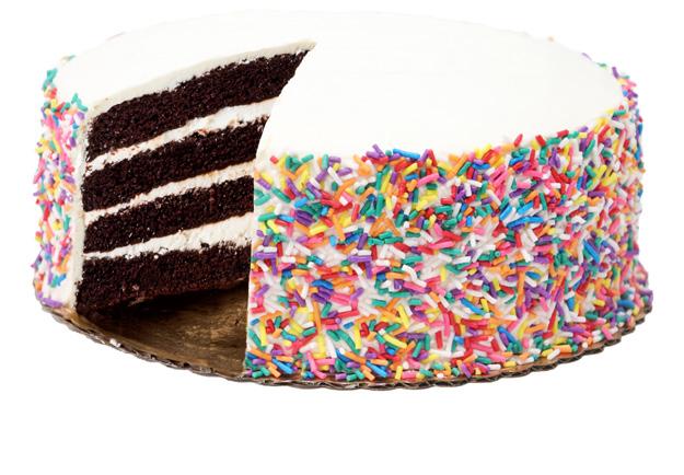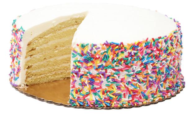 Talk about a happy birthday, our lusciously light 7-Layer Lemon cake filled with tangy, lemon-curd infused buttercream and topped with our smooth lemon buttercream and an explosion of rainbowcolored sprinkles is guaranteed to brighten the occasion.