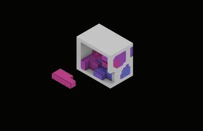 Pull & Play is a modular stage system designed to activate Calgary’s public spaces through performance, play, and social engagement. Developed in collaboration with ARUP, the project responds to the city’s goals for downtown vibrancy by offering an adaptable pavilion for both performers and the general public. The design is guided by four principles: interactability, modularity, permeability, and durability, which shape both its form and social purpose. Starting from a 3.6 × 2.4 × 3m rectangular prism subdivided into a 150mm grid, modules are subtracted and rearranged to reveal an elevated performance stage with canopy, and surrounding furniture pieces. When reconfigured, the same system transforms from a static object into an activated venue. Built entirely from EPS geofoam, the pavilion’s soft, tactile quality invites interaction across all ages, blurring the boundaries between spectator and participant, playground and performance space. Designed as a simple kit of parts, the entire system fits onto a single flatbed truck. Assembly is guided by a system using colour gradients, white orientation faces, and wave-pattern joinery, allowing city workers and public users to deploy and reconfigure the pavilion without specialized tools or expertise.