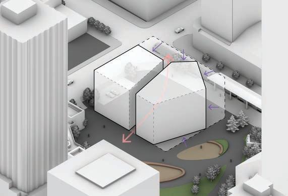 Rather than separating functions into isolated zones, the design organizes three primary programs, a newcomer center, recreational facilities, and residential units, into three overlapping activity patterns: social and interaction, learning and growth, and active and wellness, forming “the community”, a zone where different user groups can intersect, learn, and coexist. The interplay between public, semi-public, and private spaces is equally central. Residential units occupy a private corner while public and semi-public programs share larger, more open volumes. An atrium acts as a spatial buffer while creating moments of connection. Circulation paths are differentiated yet subtly linked. Public escalators, semi-public corridors, and private residential stairs each serve distinct user groups while allowing for unexpected encounters across boundaries.