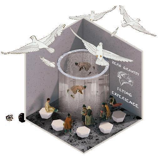 At the heart of the scheme, a central atrium anchored by a spiral staircase serves as the primary organizational spine and organizes the entire visitor journey. Immersive exhibition galleries are fully enclosed with no openings, powered by an embedded quantum computing system that generates real-time, non-linear climate narratives, creating a spatial experience as uncertain and layered as the future itself.