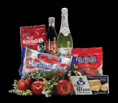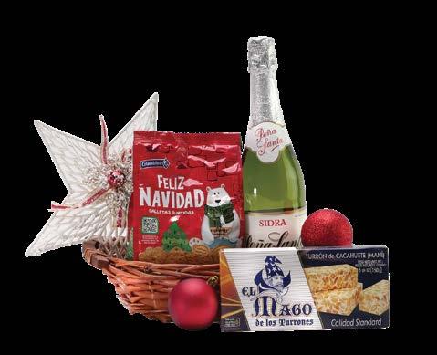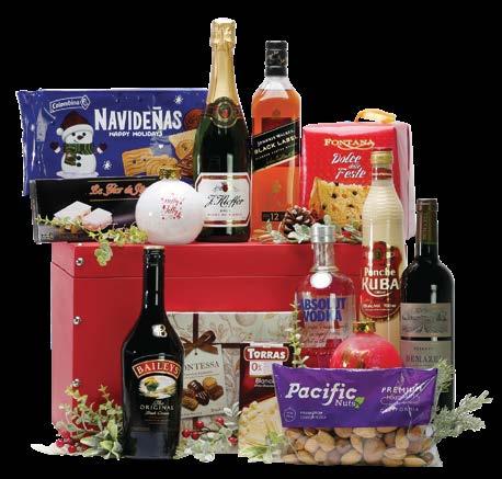 • Whisky Johnnie Walker Black Label 75 cL • Brugal Doble Reserva 70 cL • Champagne Brut Courances CFR 75 cL • Vodka Absolut 75 cL • Ponche Kuba 75 cL • Crema Baileys 75 cL • Ron Barcelo Imperial 70 cL • Vino Tinto Demazel Reserve 75 cL • Chocolate Torras Blanco 75g • Bombones de Chocolate Fontessa 200g • Nueces Mixtas Pacific Nuts 14 oz. • Turrón La Flor de Jijona 150g • Galletas Surtidas Navideñas 200g • Panettone Frutas Fontana 500g