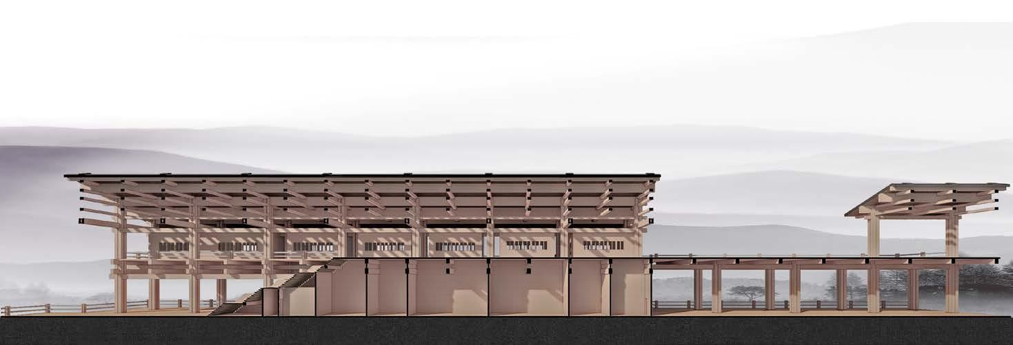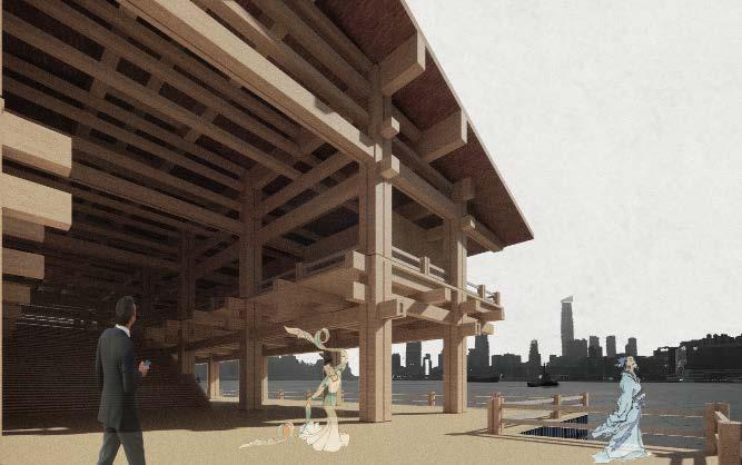 5 Depth (五進深) 11 Bay (十一間) Con guration Typology Hall of Supreme Harmony (太和殿) EXPLODED AXONOMETRIC Purlin 檁 Column 柱 Main Beam 主樑 Lifting Beam Systeam 抬梁式 Steel First Floor Playground and open space Ground Floor Boarding Area Seating Staircase O ce Ticket Box Shop Toilet Open Theater Modular Design Skills Learning Area Social Service Area Connection of Column and Floor Structure Column Architectural Column Tou- Kung System