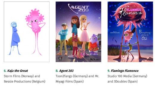 le resultat du Spotlight qui avait mis les pays nordiques en avant en 2022. "Nous avons toujours constate des effets positifs car cela perrnet a chaque fois d'attirer de nouveaux producteurs qui prennent ensuite l'habitude de venir presenter leurs projets chez nous, indique-t-elle. La participation espagnole a par exemple nettement augmente depuis le Spotlight Espagne que nous avians organise en 2018." L'Europe de !'Est a aussi repondu fortement a l'appel, avec six projets emanant de Pologne, Hongrie et Republique tcheque. Autre fait notable, le Luxembourg renforce sa presence avec trois titres dont ii est le pays de production principal. Avec 65% des films produits par deux pays ou plus, la coproduction reste le modele quasi nature! de financement de !'animation europeenne. Dix-huit projets sont des coproductions entre deux ou plusieurs territoires du prograrnrne Creative Europe - la France, la Belgique, l'Allemagne et l'Espagne etant Jes coproducteurs Jes plus actifs -, tandis que 13 sont des coproductions avec des pays non membres de !'Union: Afrique du Sud, Canada, Philippines, Royaume-Uni et Suisse.