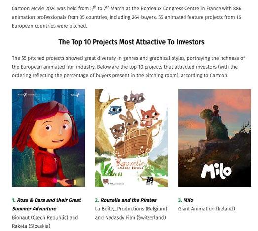 La rassegna sui progetti dei film d’animazione si tiene a Bordeaux dal 5 al 7 marzo. Dalla sua nascita, nel 1999, ben 458 film animati hanno trovato finanziamenti grazie al Cartoon Movie con un budget totale di 3 miliardi di euro