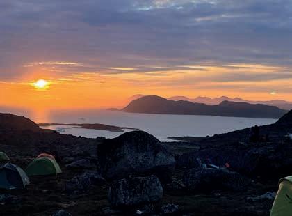 Le premier jour sur l’île a été consacré à l’installation, l’aménagement du camp et le repérage des projets faisables sur les parois et arêtes alentours. Les journées suivantes furent remplies de toutes sortes d’activités, en passant par l’escalade de longues voies ou de l’alpinisme, jusqu’à la pêche aux moules, pour terminer ces belles journées avec des soirées festives ou créatives. Durant ces quelques semaines, plusieurs projets sportifs ont été réalisés. En commençant avec de l’escalade, avec des voies de niveaux adaptés à toutes et à tous, allant du 4c au 6c, ou de l’alpinisme, sur des arrêtes vertigineuses et vierges de toutes traces de l’Homme. Le rocher, du granit, était adéquat, malgré un lichen agressif pour les mains, mais cette légère douleur était vite oubliée lorsque, une