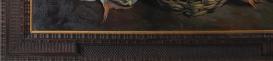 Pair of still life painting of fruits with birds. In gilded wooden frame. Around the 19th century, Spain.