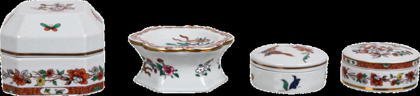 Cups: 10 x 7.5 cm; 7.5 x 6.5 cm; 6.5 x 4.5 cm; 5 x 4 cm; 3 x 5 cm; 15 x 25.5 x 14 cm; Inkwell: 15 x 25.5 x 14 cm