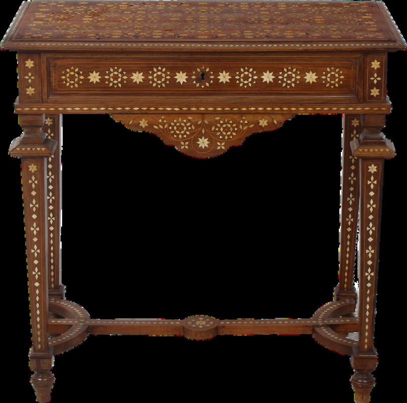Anglo-Indian rectangular table with bone inlays, dated late 19th to early 20th century Profusely embellished inlaid bones in geometric, foliate, and floral patterns Square tapered legs are connected by a stretcher in linear, curved, and circle motifs