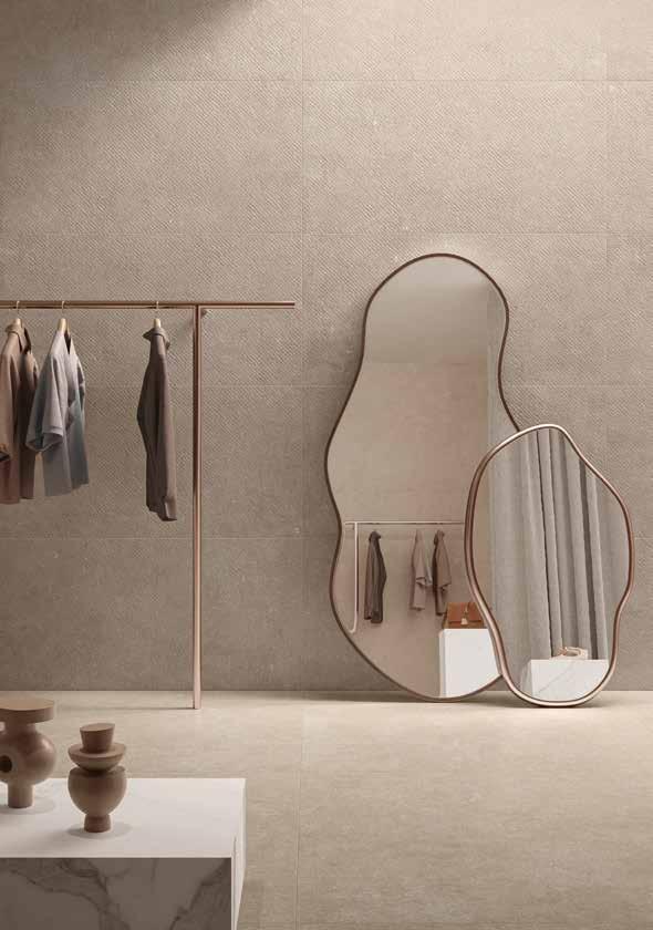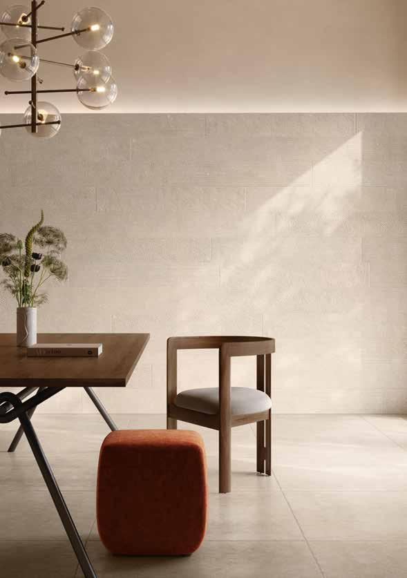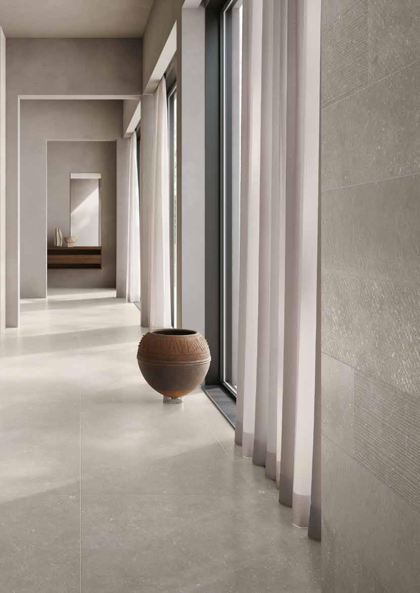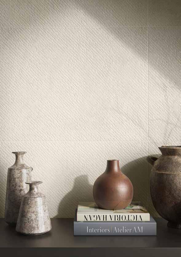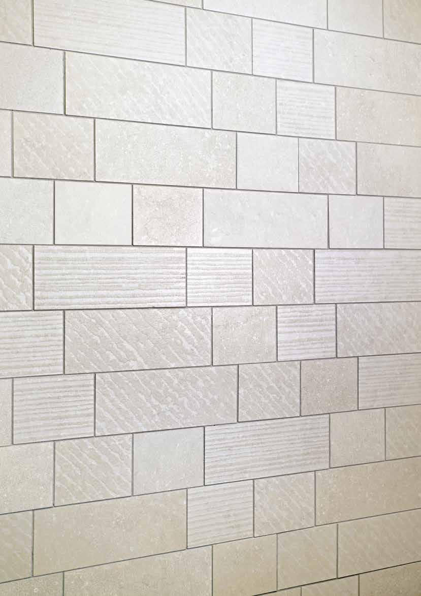 IN COPERTINA / ON THE COVER / EN COUVERTURE / AUF DER TITELSEITE WALL: Modulo B: Stile Pearl Naturale 20x120 cm_Stile Pearl Diagonale 20x120 cm_Stile Pearl Rigata 20x120 cm_Stile Pearl Anticata 20x120 cm FLOOR: Stile Pearl Naturale 60x120 cm