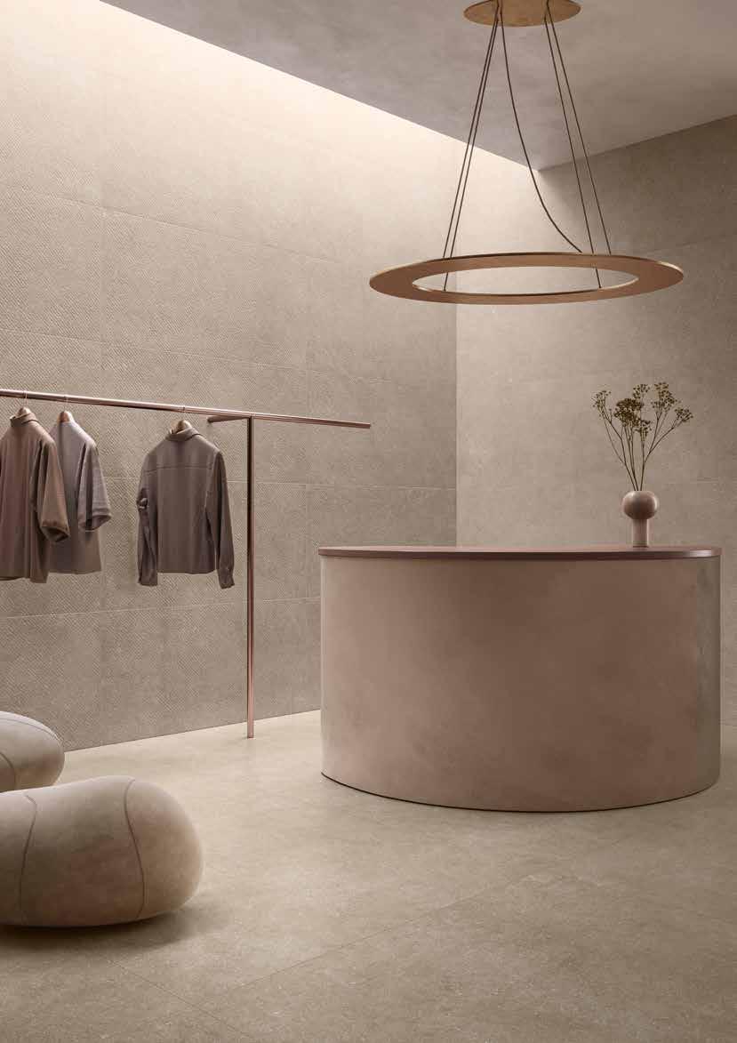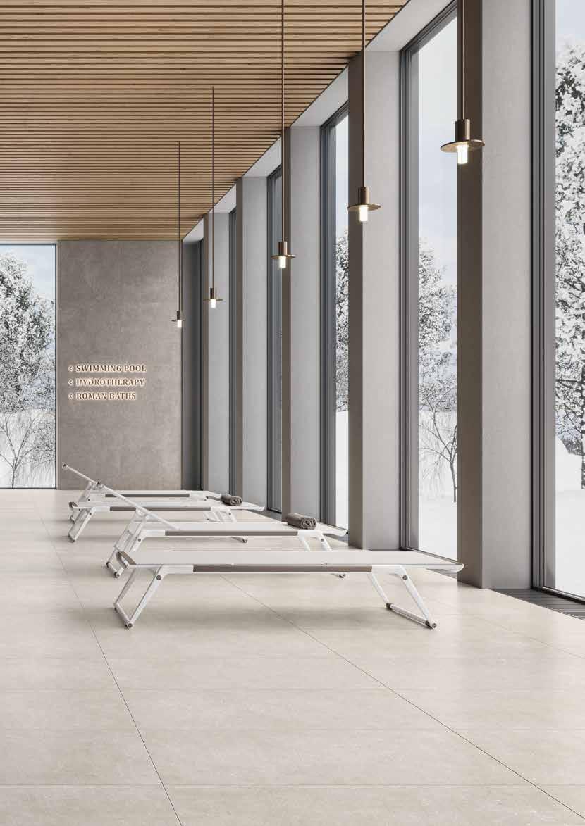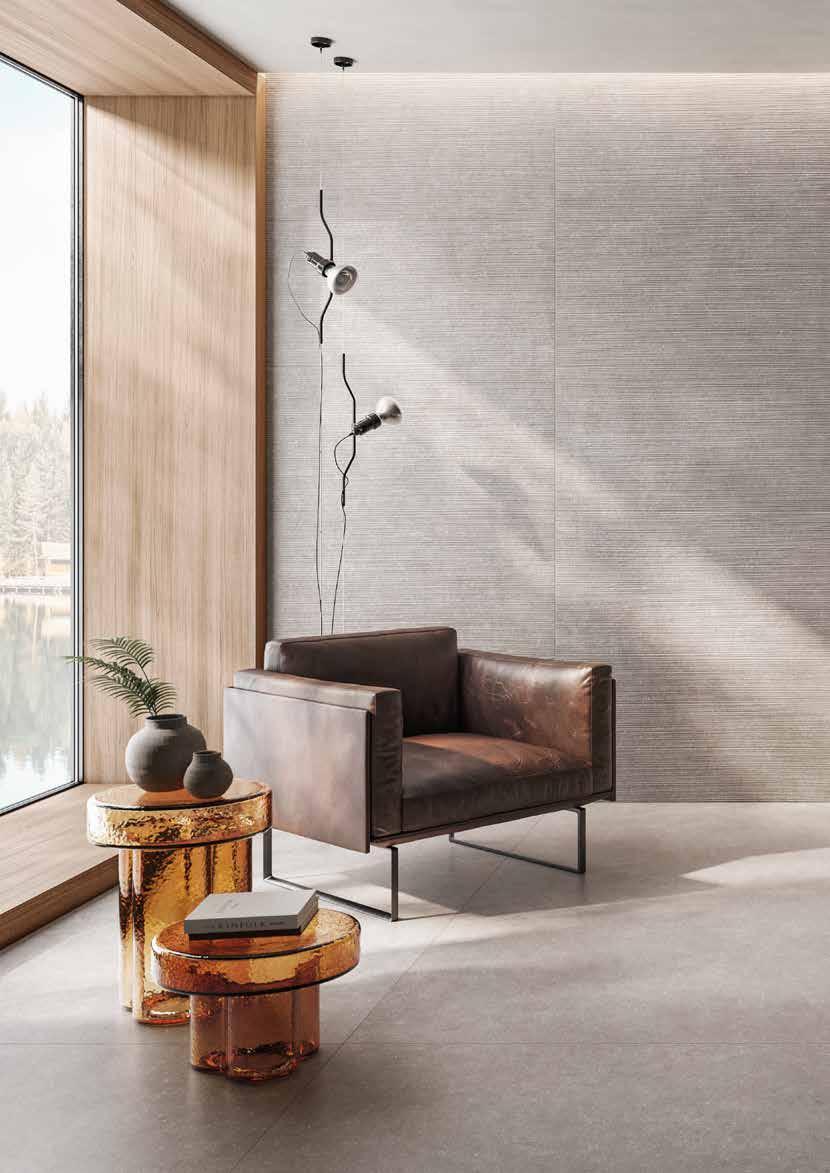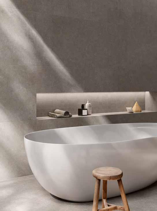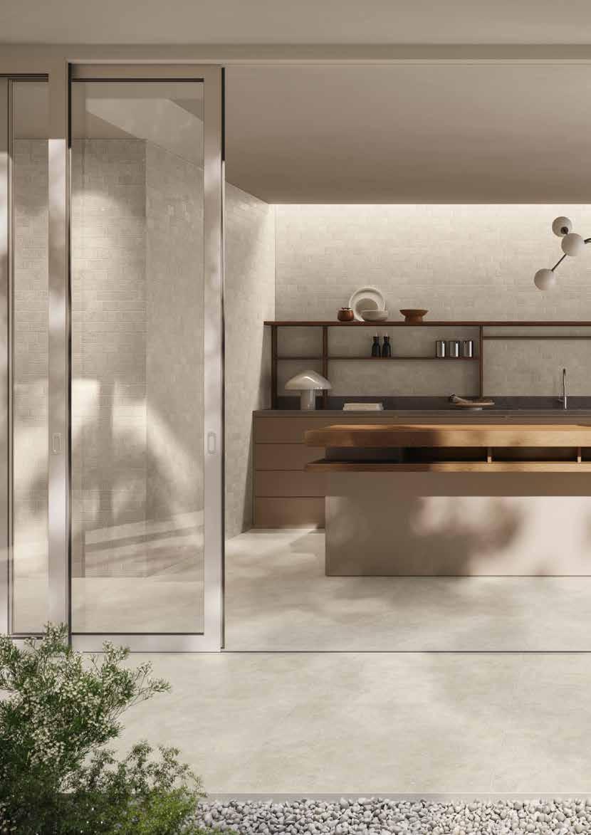 IN COPERTINA / ON THE COVER / EN COUVERTURE / AUF DER TITELSEITE WALL: Modulo B: Stile Pearl Naturale 20x120 cm_Stile Pearl Diagonale 20x120 cm_Stile Pearl Rigata 20x120 cm_Stile Pearl Anticata 20x120 cm FLOOR: Stile Pearl Naturale 60x120 cm