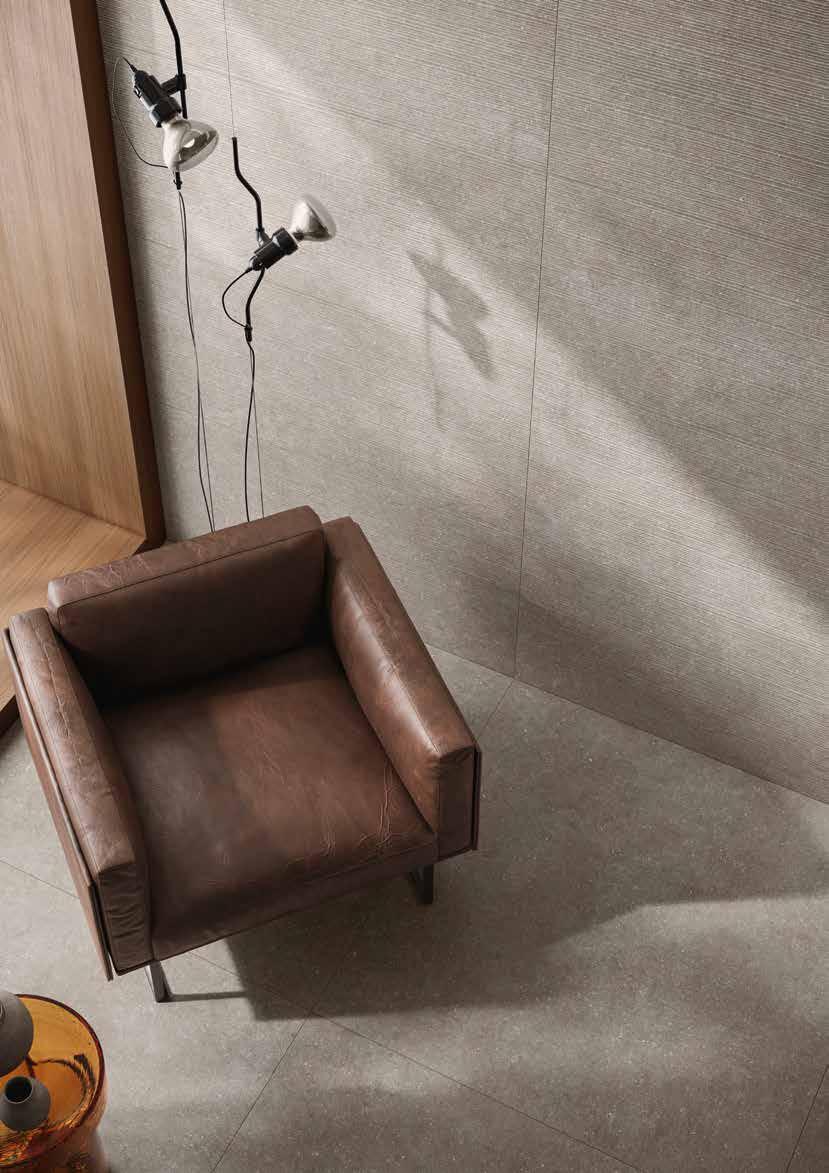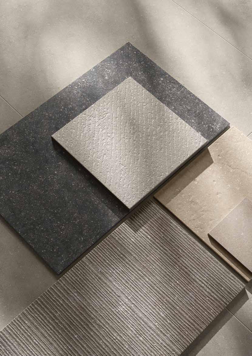 Una selezione di pietre naturali diventa il riferimento materico e cromatico della nuova collezione Stile, per ritrovare nelle proprietà durevoli e di resistenza del gres porcellanato il fascino dei materiali della terra.