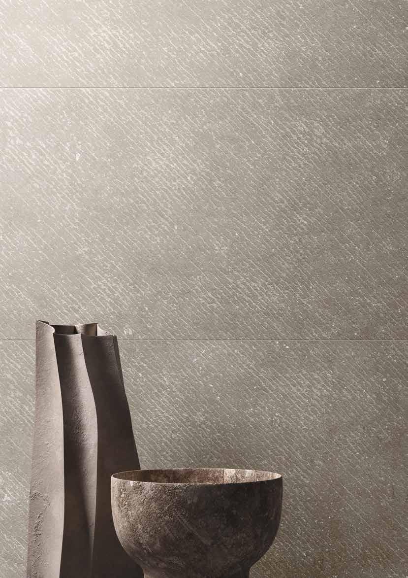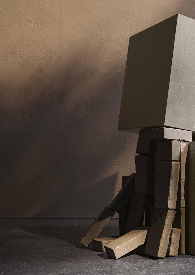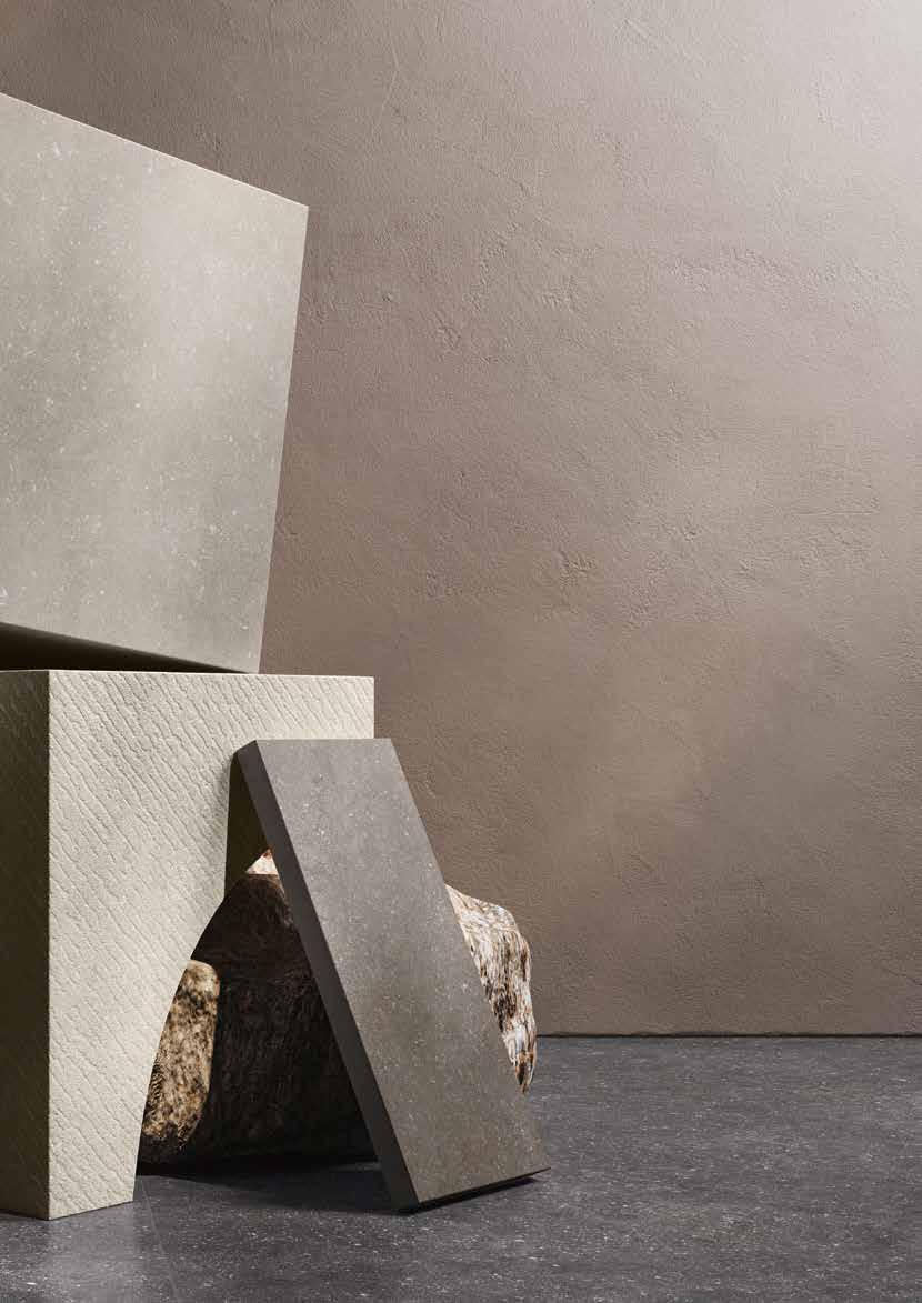 7 finitions pour interpréter le caractère authentique et changeant de la pierre naturelle. Sieben Oberflächenausführungen, die die veränderliche Wahrhaftigkeit von Naturstein interpretieren.