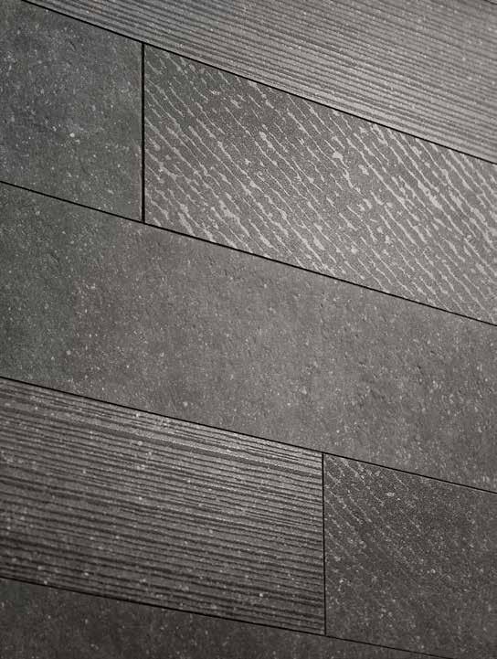 Mit Stile hat Casalgrande Padana das Aussehen von Natursteinen durch die unterschiedlichen und möglichen Bearbeitungsverfahren in die neue gleichnamige Kollektion übertragen, die eine Art Hommage an ein tausendjähriges Material wie den Naturstein ist, der in Gebäuden aller Epochen und Zivilisationen verwendet wurde. Stile wird in sechs verschiedenen Farbgebungen angeboten, die von grau- und beigefarbenen Erdtönen bis zu intensivem Schwarz-Blau reichen, sowie in sechs Formaten, die eine größtmögliche Gestaltungsfreiheit beim Verlegen ermöglichen. Vom kleinsten Format 30x60 cm über dessen Vielfache 60x60 cm, 60x120 cm und 120X120 cm, dazu die Maße 45x90 cm und 90X90 cm, alle mit Stärken zwischen 9 mm und 20 mm. Die verschiedenen Formate werden um eine Serie von Mosaiken im Format 30x30 cm mit Mosaiksteinen im Format 5x5 cm und 5x15 cm sowie einem Dekor auf Gewebe mit Mosaiksteinen unterschiedlicher Größe ergänzt.